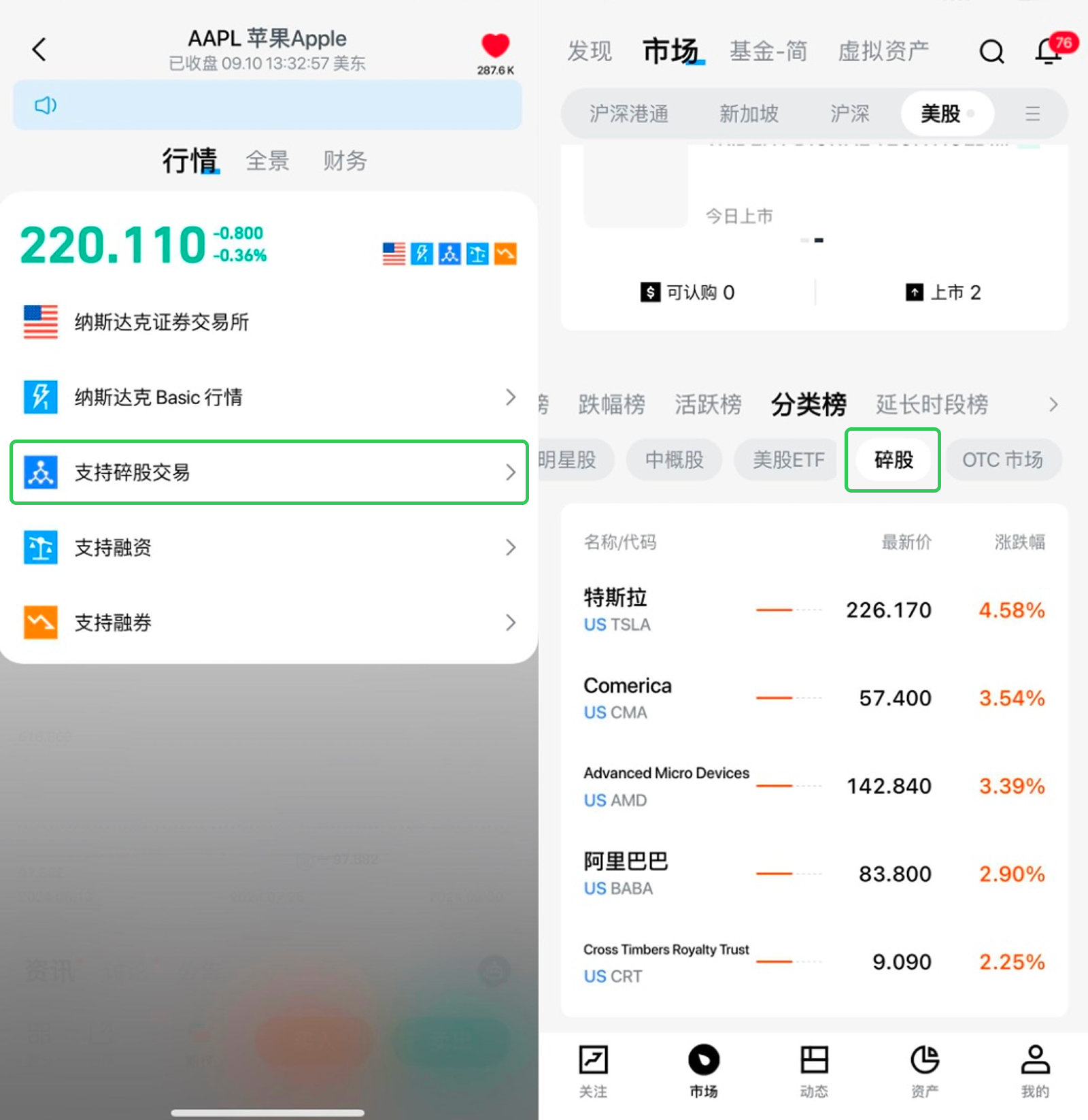 先選擇支持美股碎股交易的股票。